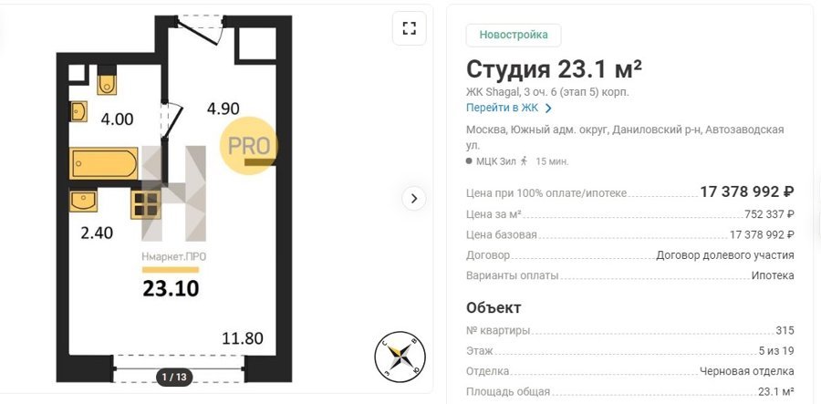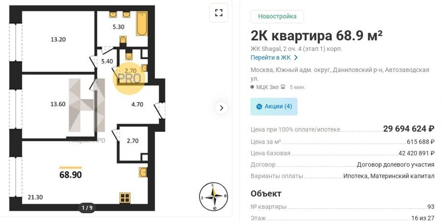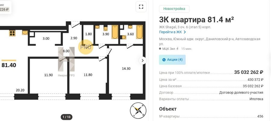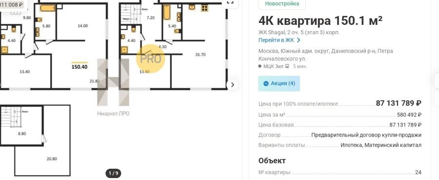 Рассрочка 0% с первоначальным взносом 5% и ежемесячными платежами 60 тыс. р.