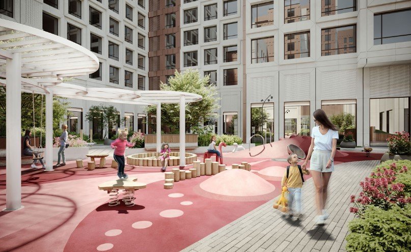 Безопасная среда для детей, закрытые дворы без машин и с игровыми площадками , вдохновленными австралийскими парками, собственные детские сады и продуманные семейные квартиры с изолированными комнатами - сделают детство счастливым.