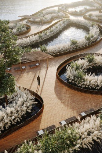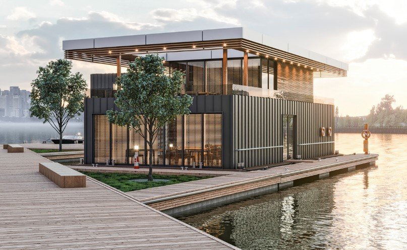 Вода становится не просто фоном, а полноценной часть жизни. Для вас деревянные террасы у воды, кафе на сваях, стеклянные беседки с панорамным остеклением, а также подводная подсветка, плавающие огни в стеклянных шарах.