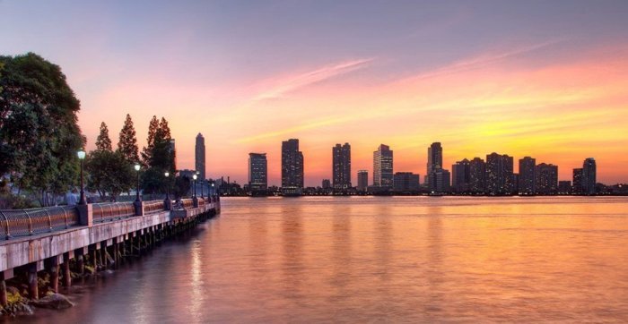 Просыпаясь вы видите, как река играет бликами в первых солнечных лучах, а с наступлением сумерек река превращается в зеркало, отражающее огни города.