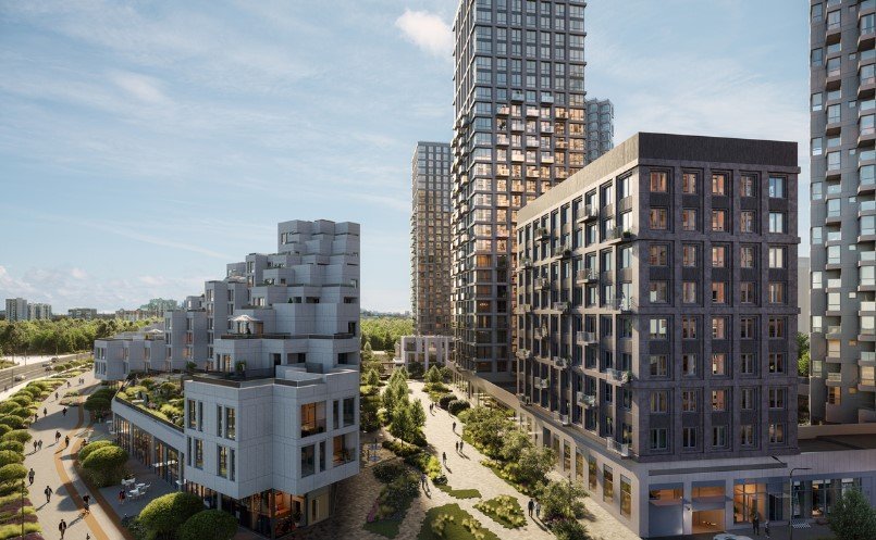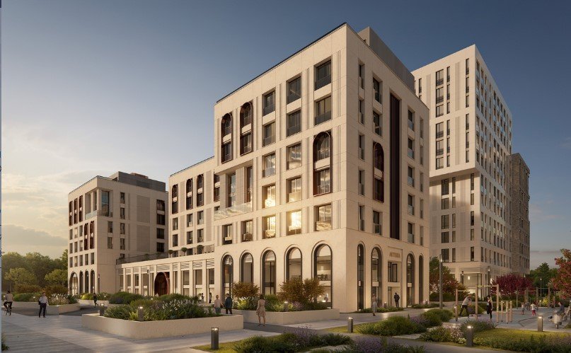 Каждая линия жилых комплексов будто нарисована кистью, а фасады дышат той самой легкой безупречностью, которая превращает обычный дом в произведение искусства. Французские балконы с ажурным ограждением, парящие этажи с ритмичными смещениями, словно страницы раскрытой книги, а окна -полотна разного формата создают живую игру света.