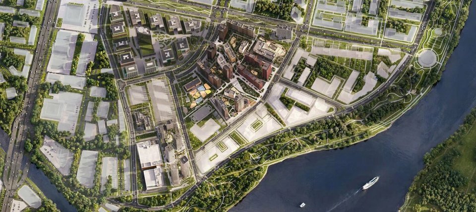 Новый жилой район спроектирован в концепции «двор без машин». На закрытой охраняемой территории разместятся подземные паркинги, зоны для отдыха, дорожки для бега, спортивные площадки и зеленые зоны общей площадью 19,5 га. Жители смогут прогуливаться в центральном парке и по благоустроенной набережной Москвы-реки.
