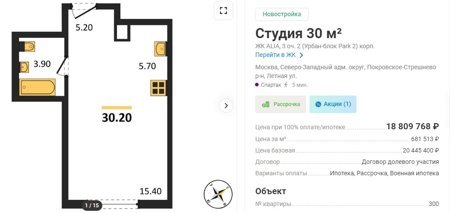 Субсидированная ипотека, ставка 0.01% на первый год кредитования. Далее Базовая ставка 27.4% ПВ от 30.1%,